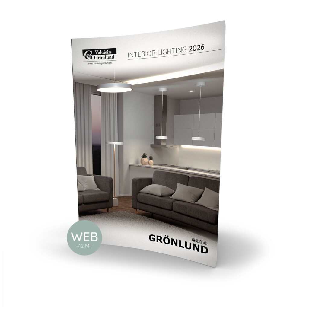 The Valaisin Grönlund lighting catalogue brings together the latest, most popular and timeless luminaires from the Design by Grönlund collection. The catalogue features a wide range of table, ceiling, floor and wall lights, as well as special products such as acoustic luminaires and LED solutions. It provides an inspiring overview of the collection and helps visualize how different lighting solutions work in residential and public environments. You can browse the catalogue online or download it for project planning, interior design or product comparison. The catalogue is updated regularly to ensure access to the most current selection.