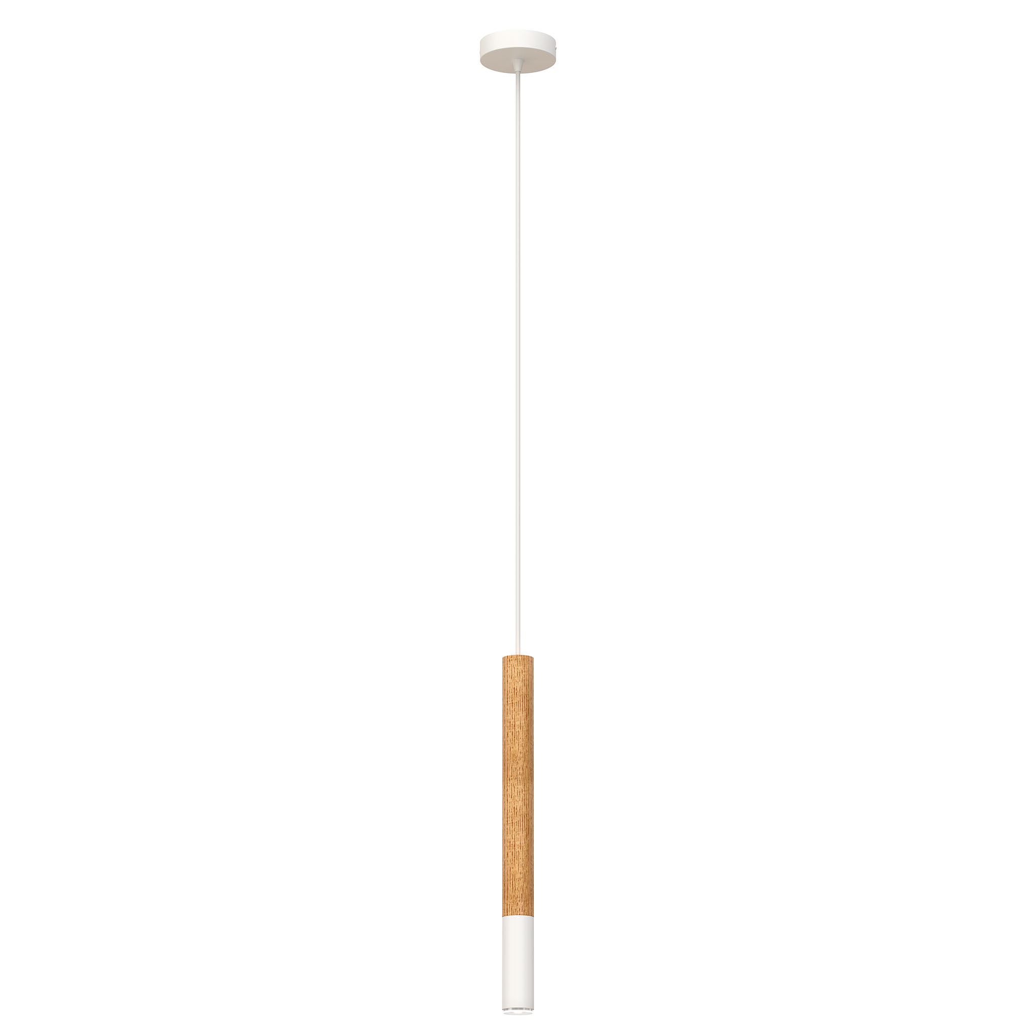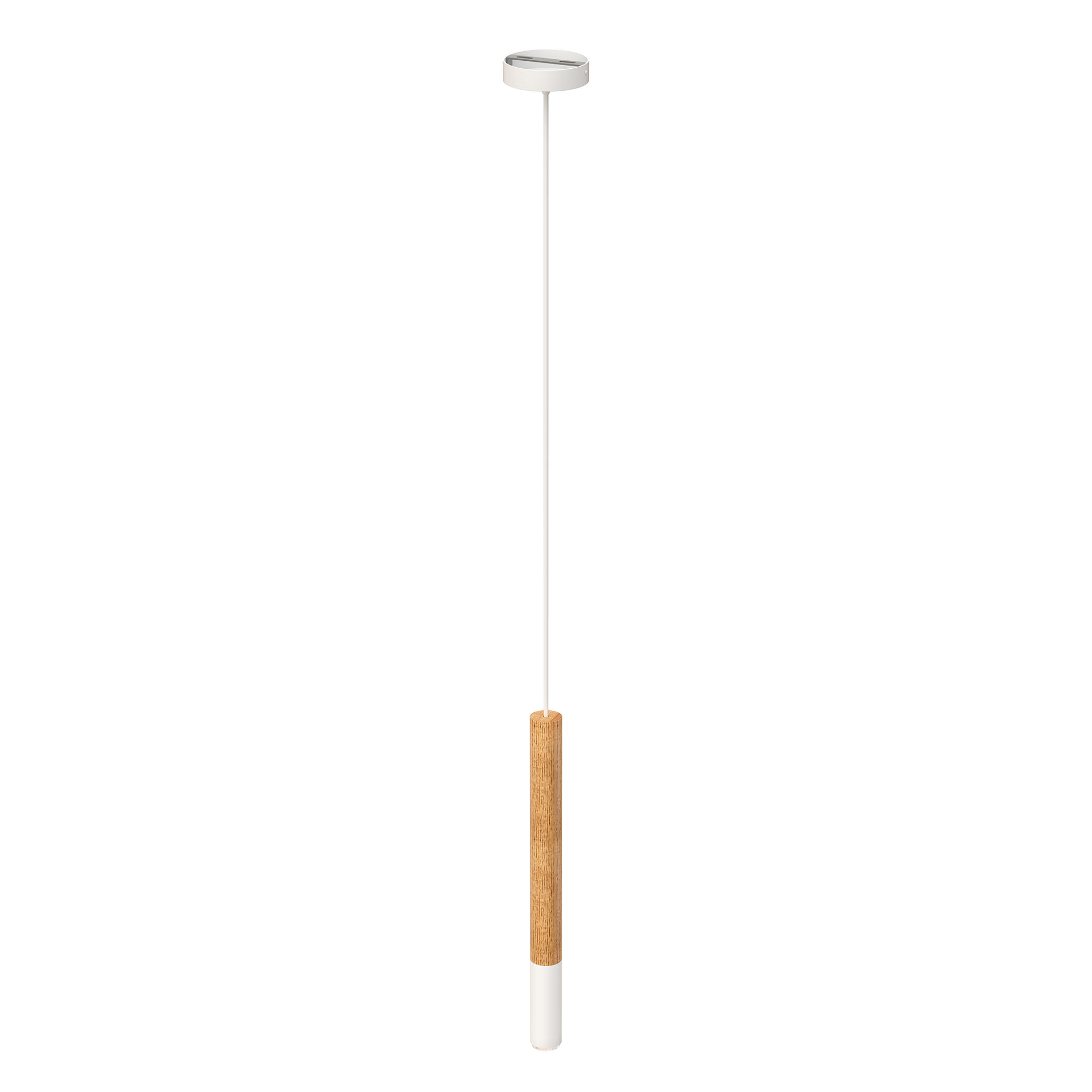 Flute is a slim semi-wooden pendant light. It has three versions with different bottom part finnish: black, white and brass. Due it small form Flutes works best when placed on groups – in line over a dining table for example. Flute has a socket for a single G9 LED bulb and comes with three meter cord.