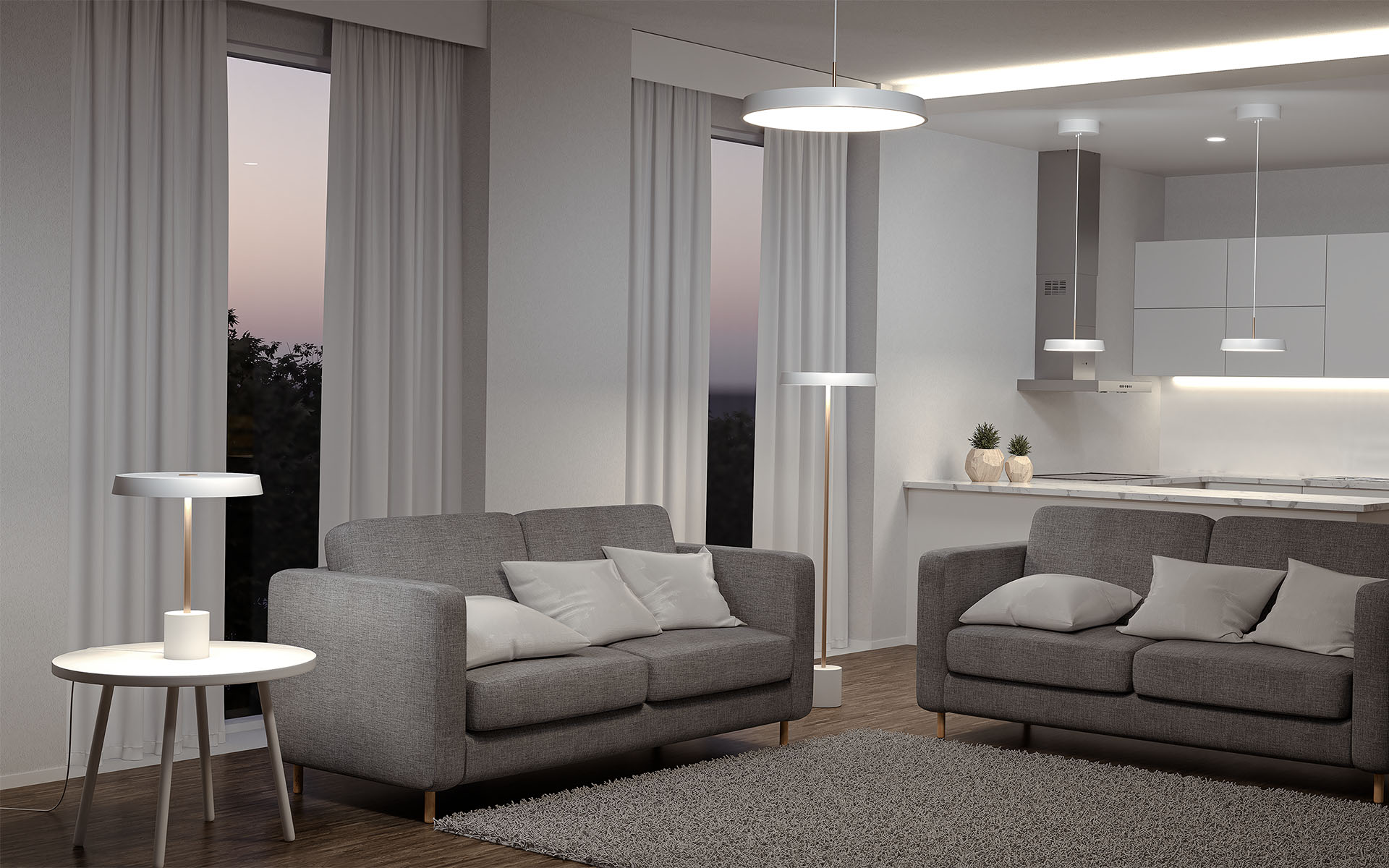 The beloved Kimber product line has now grown to include stylish table lamps and floor lamps. Much like their pendant counterparts, the new Kimber lamps feature a minimalistic, thin shade. Despite its sleek design, the shade boasts a large surface area, delivering a potent yet seamlessly diffused light. Just like the original Kimber pendants, the new table and floor lamp models are offered in the same elegant color options: black-brass, white-brass, and brass.