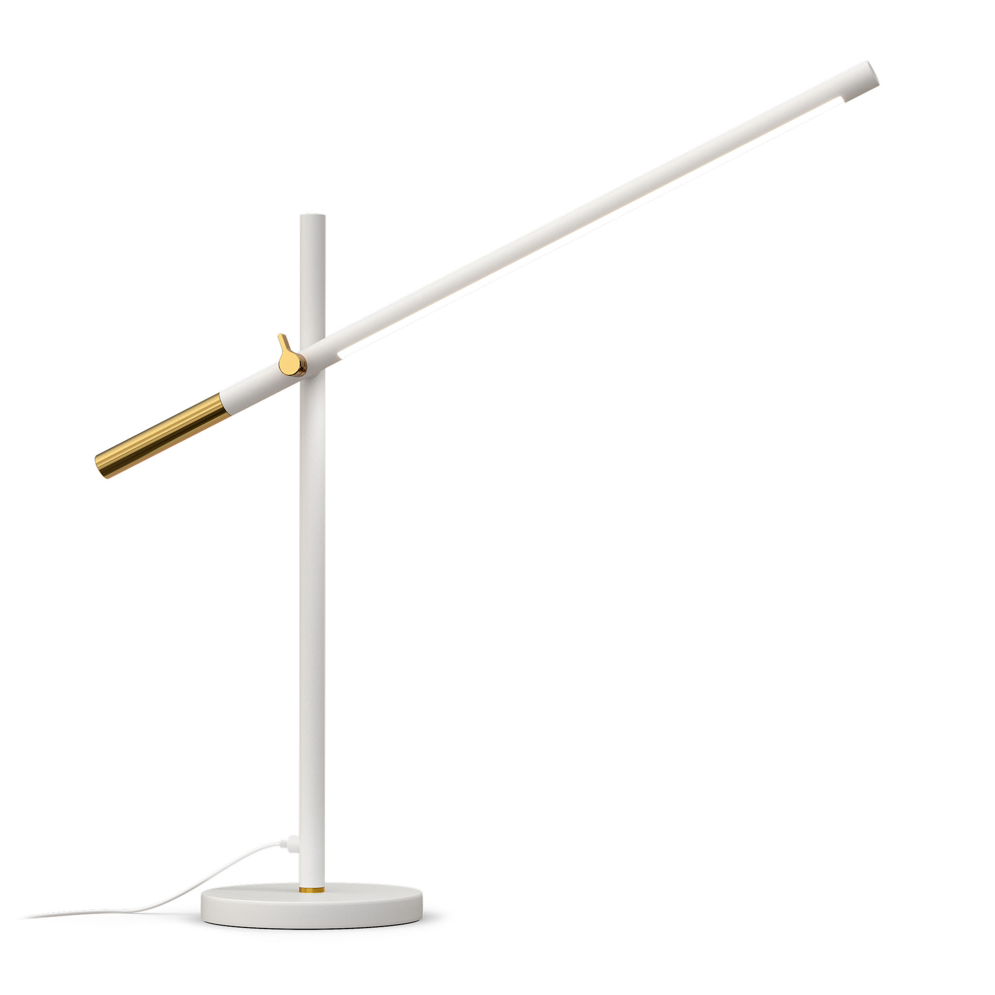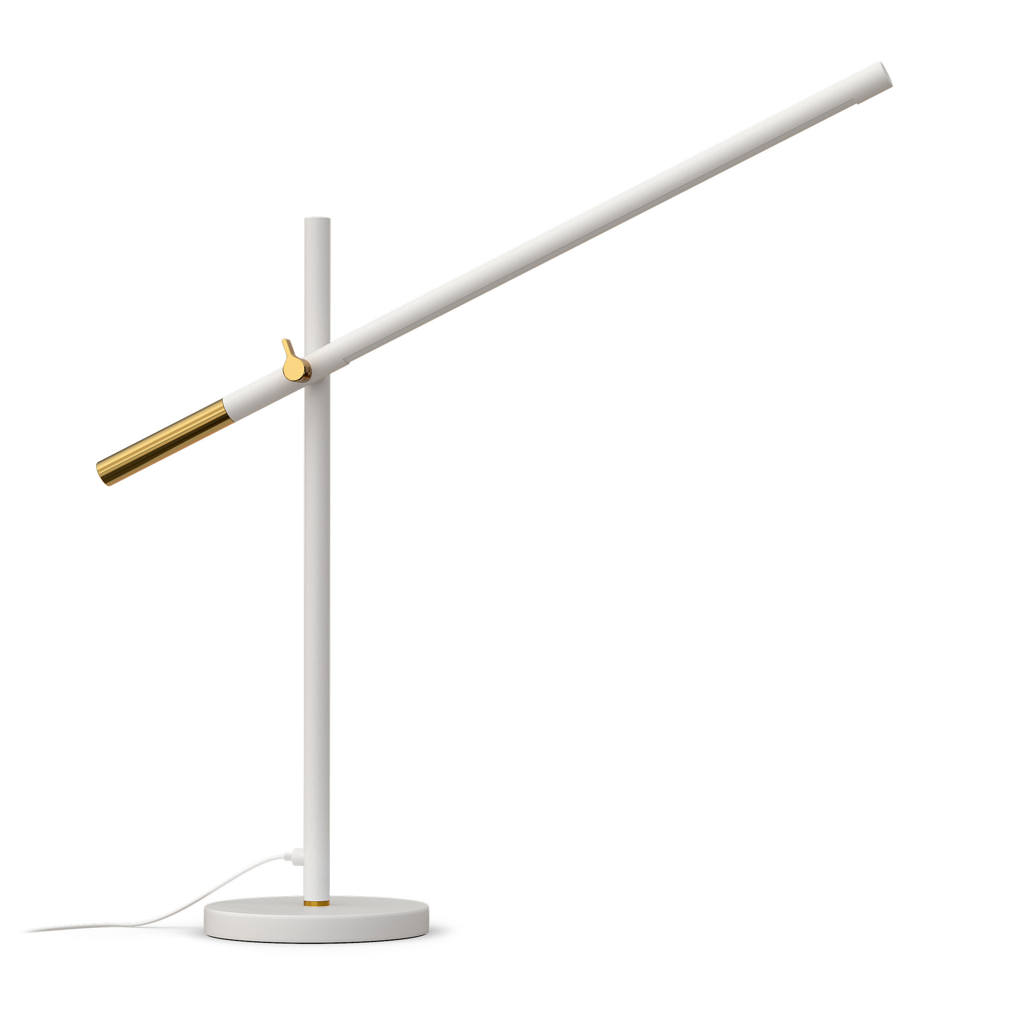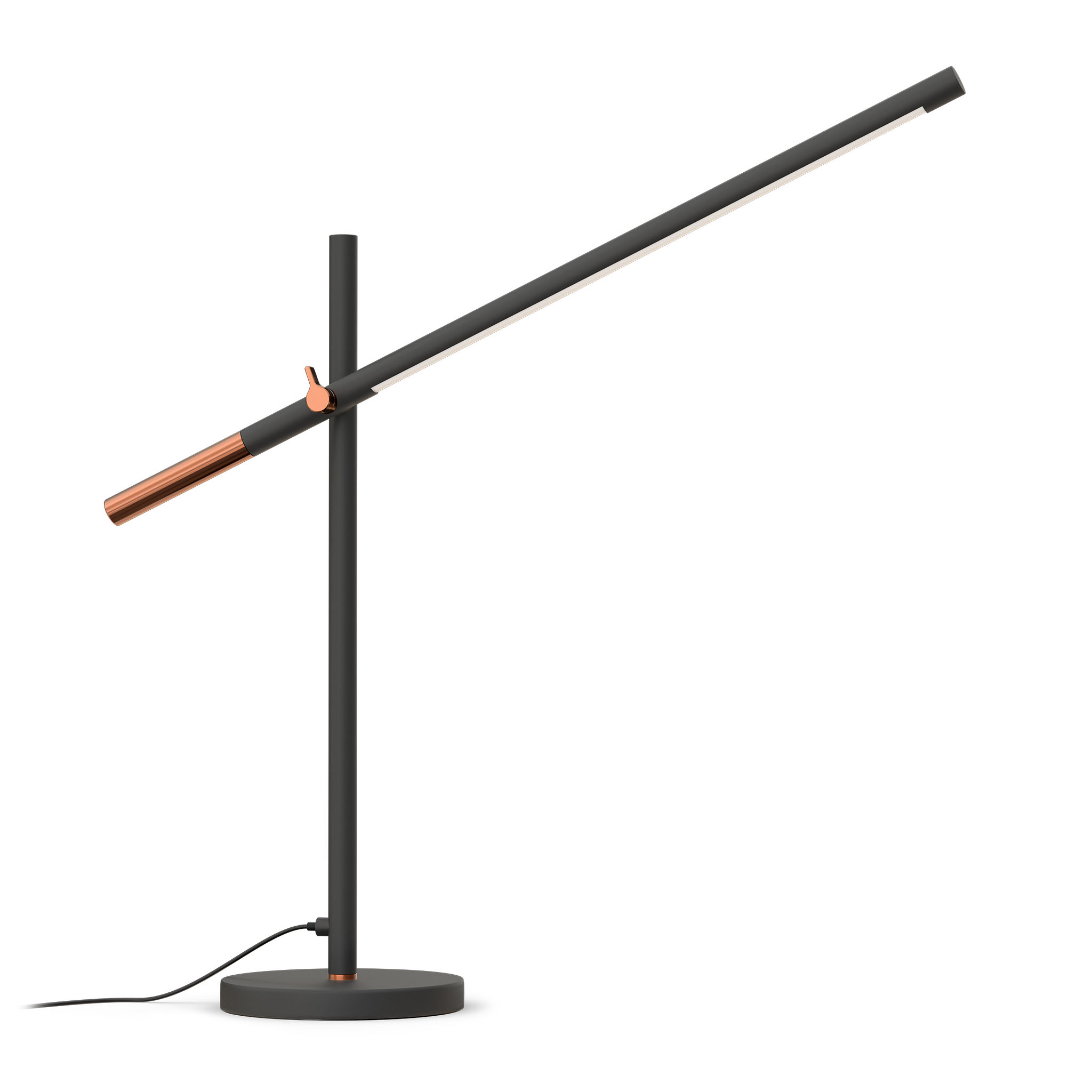 Piano is a slim modern style LED light with matt black or white finish and elegant glossy copper or glossy brass details. Minimalistic design with the principle less is more, combining functionality with sophisticated design details. The narrow upper part is attached to the body so that it can be moved upwards and downwards. The long LED light under the whole upper part makes it possible to give good but still pleasant light and it is suitable for many purposes: reading, working or general lighting. This is a lamp that stands out with a natural elegance. Available as a table or floor lamp.